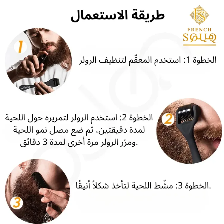 الرولر للحية: بفضل إبره الدقيقة، يزيد من امتصاص المصل ويحفّز عملية طبيعية لتجديد البشرة.